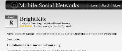 I have created a new site called Mobile Social Networks at mobilesocialnetworks.com.au – it’s a bit useless at the moment as it only has 38 mobile social networks on it, and I haven’t really found my voice or format yet, but I will fix that. I do have a list of around 240 or more…