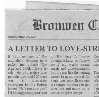 Don’t believe me? Go ahead and have a look at the discussion (err flame war, please don flak jacket before clicking through) on Bronwen Clune’s blog (she’s the Citizen Media Proprietor for Australia, in my book) A letter to Love Stricken Fairfax Journalists – a typical comment?