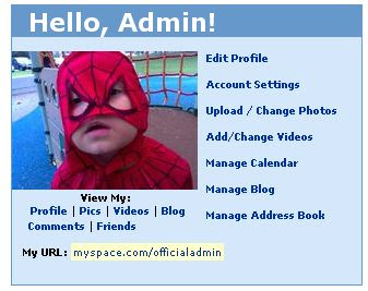 - MySpace contacts the lovely SilkCharm (me!) and tell her they have removed Admin Moderator and the “officialadmin” homepage. Plus they are banning her accounts, IP range and MAC addresses. And the lawyers will be in touch. (I’m sure I broke one of their Terms of Use or Terms of Service which I never read). Oh and she’ll be spanked with a wooden paddle. See its not all bad. 😛