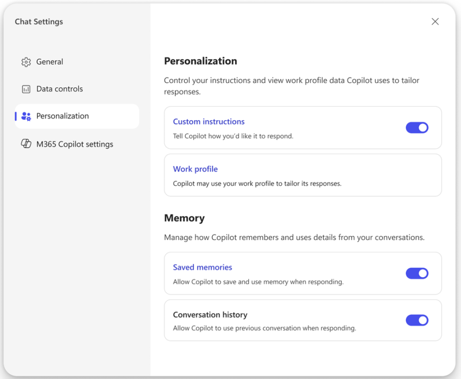 December 2025: MS Copilot now has memories as well as custom instructions.